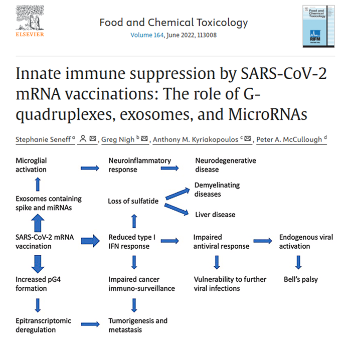 - 先天免疫抑制:mRNA 疫苗可能抑制先天免疫系統(如 I 型干擾素反應),進而可能增加罹患癌症、自體免疫疾病或潛伏病毒活化的風險。
