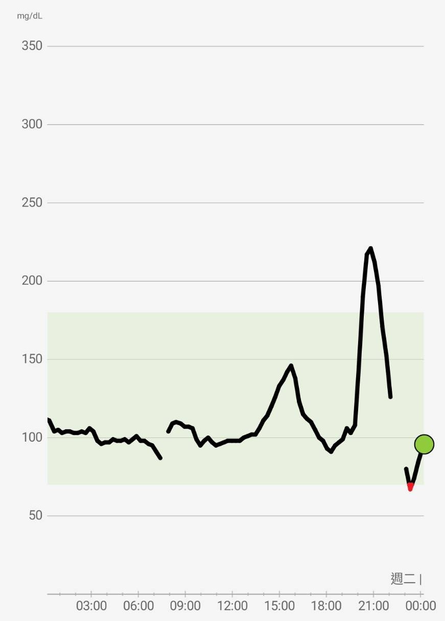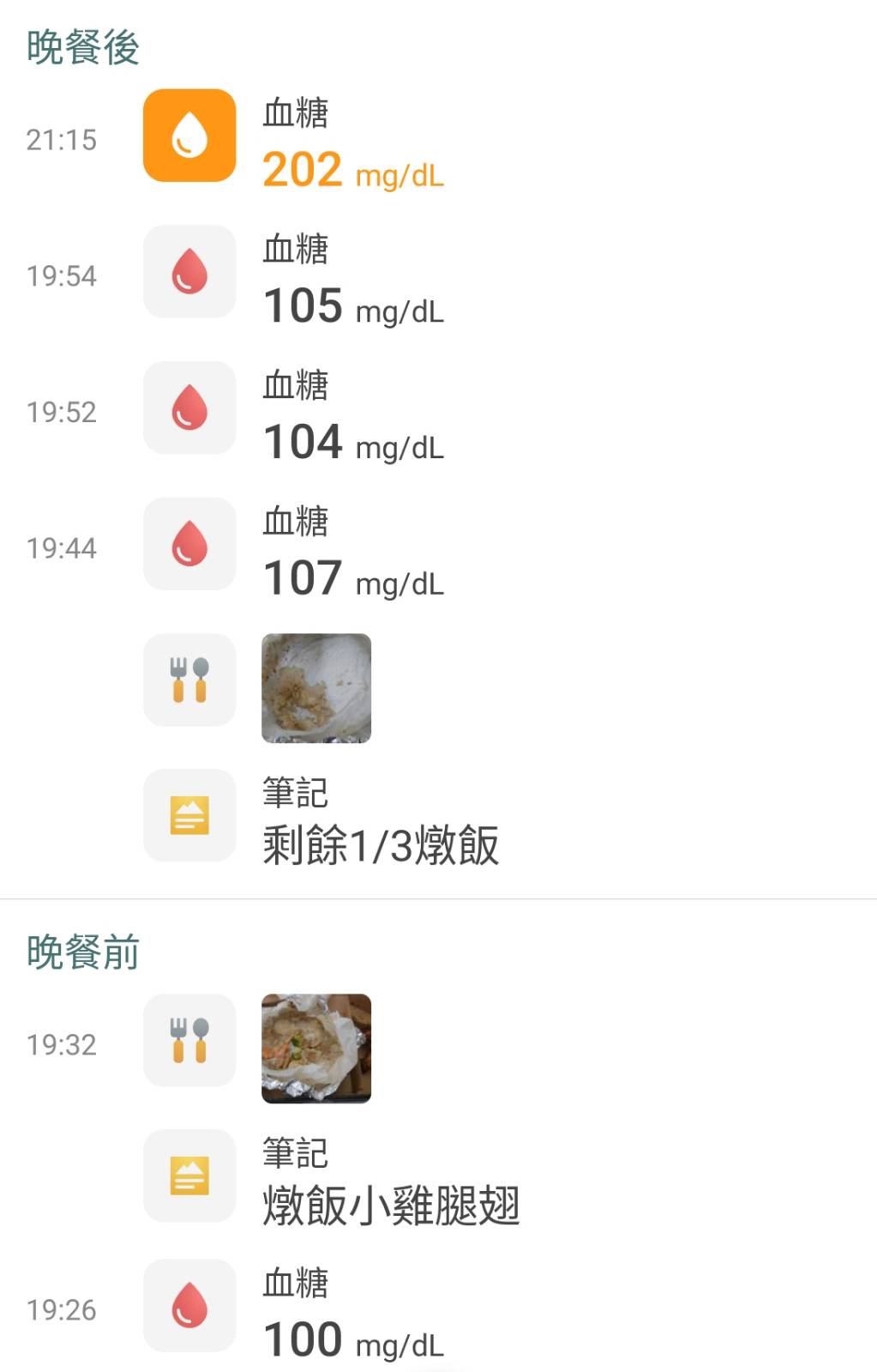 晚餐吃只吃小棒棒腿跟雞翅以及燉飯造成餐後血糖明顯飆升