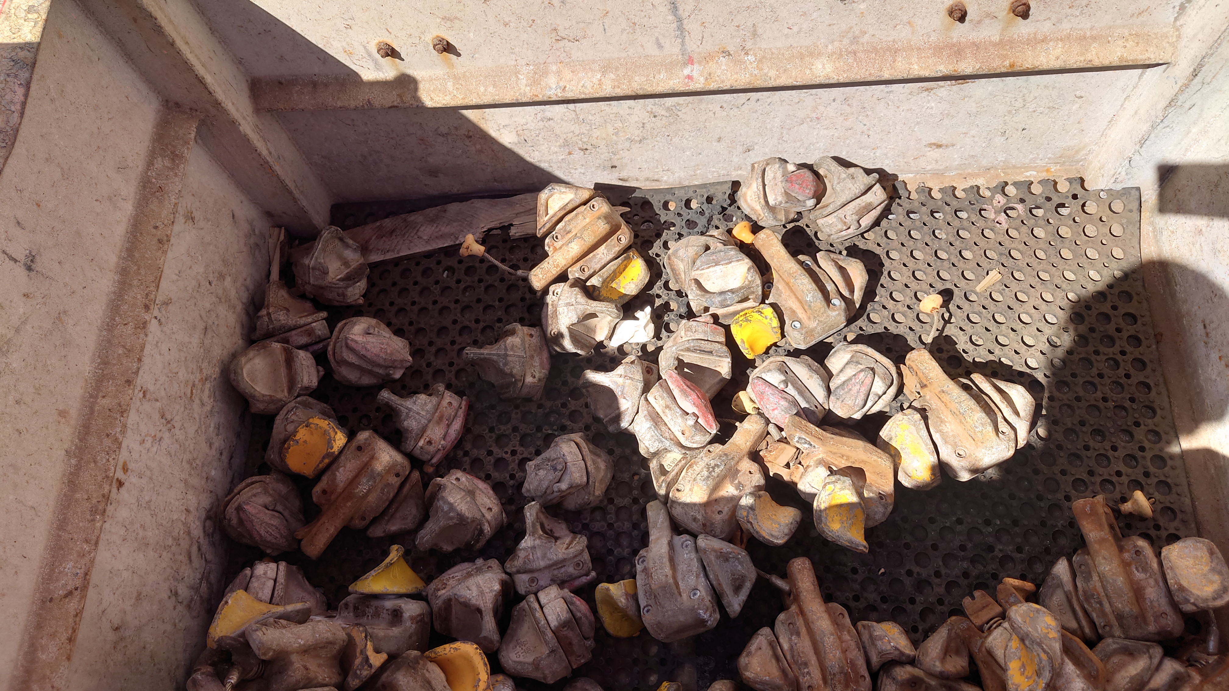 船下貨櫃裝卸的「船下徒手工」:從事貨櫃固定,有四個大型螺絲,這個步驟要精準對準貨櫃車,然後人員會過去拆卸或安裝「螺絲」固定住貨櫃四個角落。這個步驟的風險是有可能會被貨櫃空中掉落壓砸傷風險,也可能會被貨櫃角捲夾壓砸傷